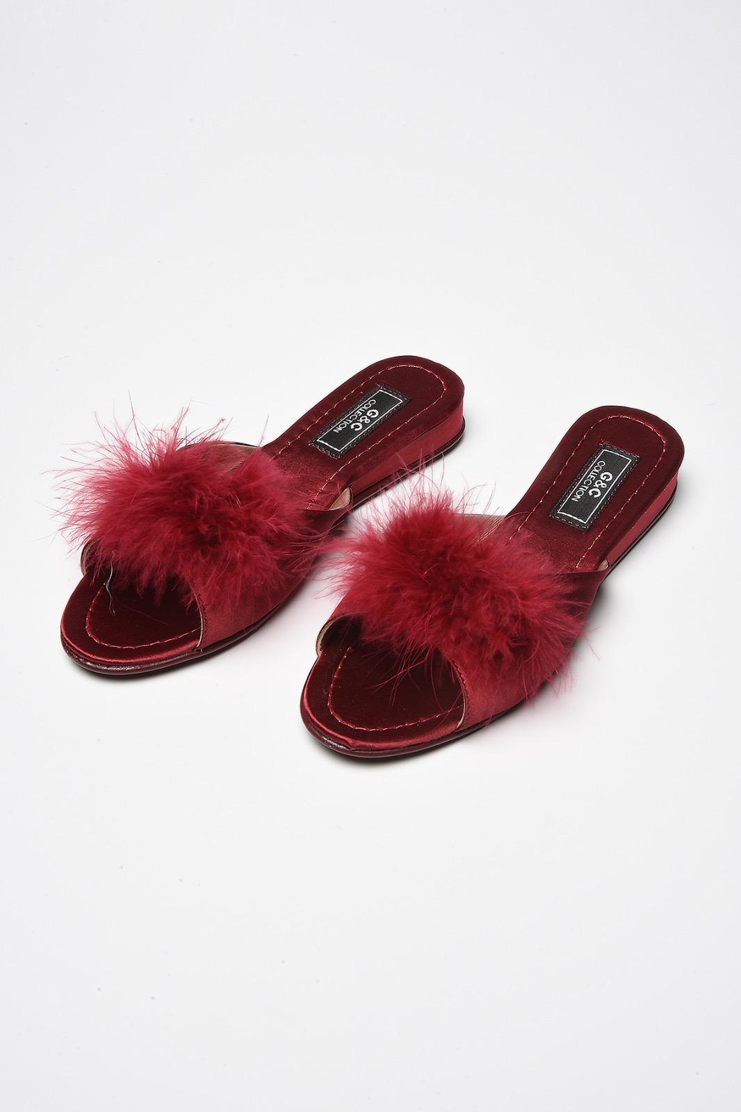 Alçak Taban Tüylü Gelin Çeyiz Ev Terliği